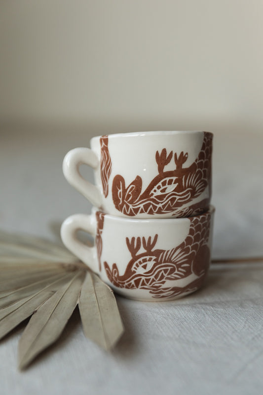 Handmade ceramics hand painted with dragons, fishes and serpents. Real magical creatures symbolises wealth, good luck and connection with Mother Earth.