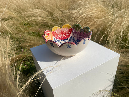 Handmade brightful Flower Power hand painted highly functional ceramic collection from Parbiart Studio.