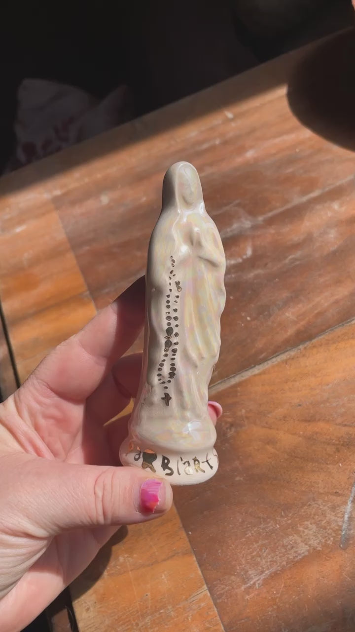 15 cm small Prism Mary ceramic decoration. Glazed with Pearl Glaze, and 24K gold luster.