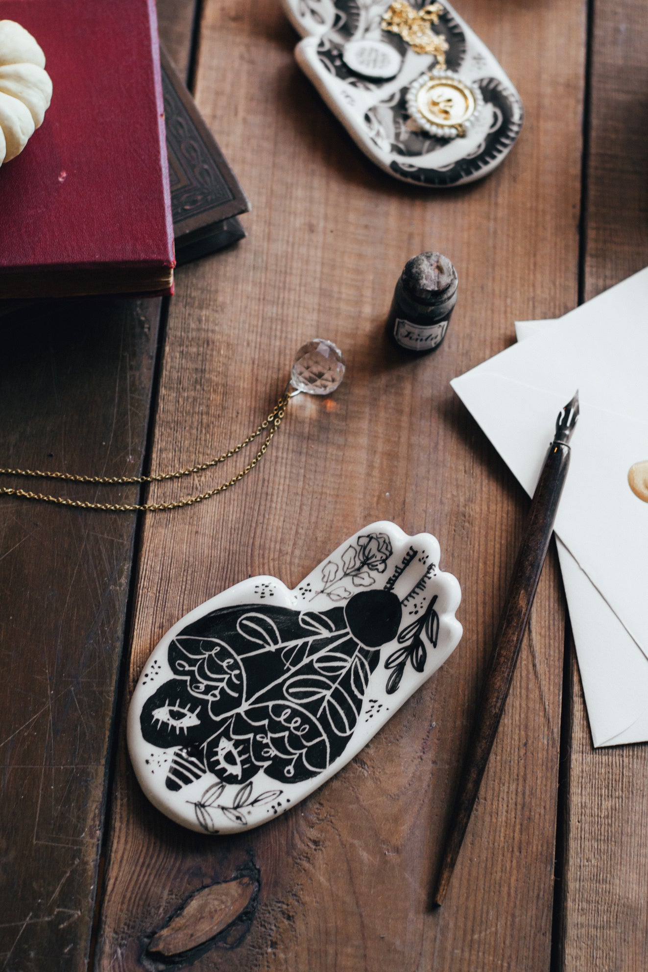 Witches' hands Incense holder with moth or snake illustration